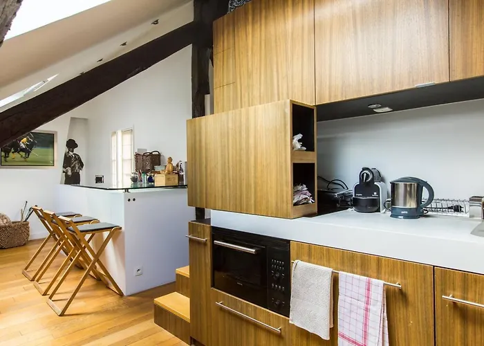 Die Gäste des Apartments Zugang zu einer kompletten Küche. Das Restaurant Otiamo serviert Gerichte der italienischen Küche und ist 5 Minuten Fußweg von hier entfernt. Die Ferienwohnung Small Triplex liegt in circa 5 Gehminuten Entfernung von der U-Bahn-Station Maubert-Mutualite sowie nur wenige Minuten mit dem Auto entfernt vom Bahnhof Saint-Michel - Notre-Dame.